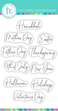 Set of 10 clear photopolymer stamps. Comes packaged in a clear folder for easy storage.