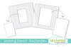 Set of 2 stencils, each measuring 6" square. Large rectangle measures 3 1/4" x 4 1/2"; small rectangle measures 2 1/4" x 3 1/2".