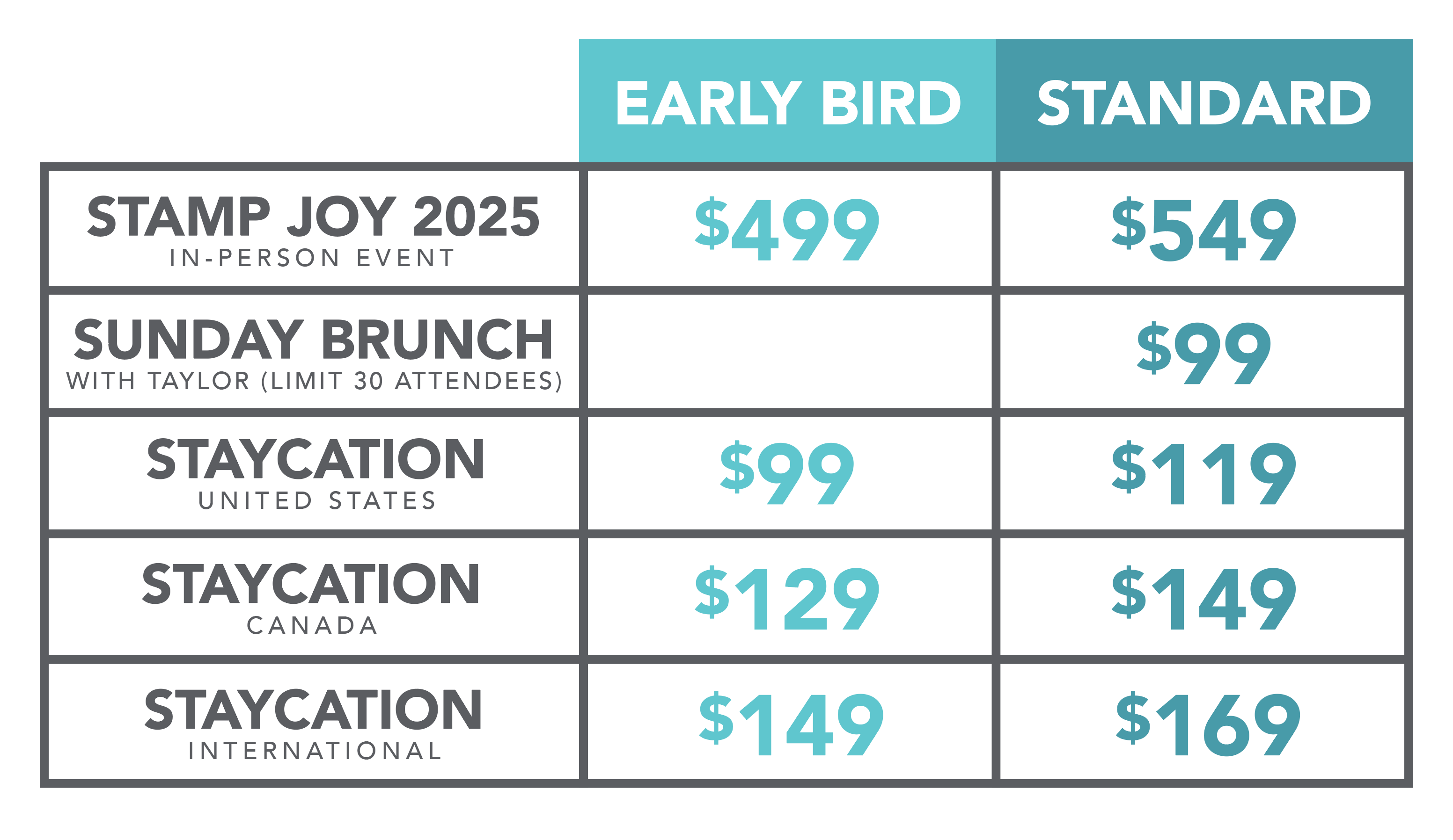 Stamp Joy Staycation, held on Saturday, November 8, 2025, brings the creativity, inspiration, and fun of our signature event straight to your craft space!
