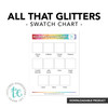 The TE All That Glitters Color Chart Download is designed to provide you with a visual reference of the TE All That Glitters collection. The chart includes an area for you to sample a swatch of each color.